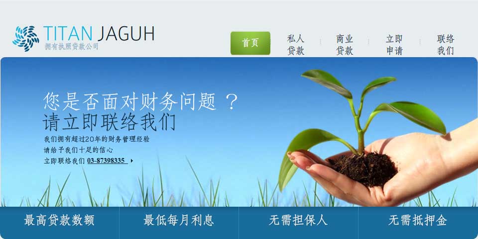 我们给您最高的贷款数额,最低利息和偿还期高达五年, 我们提供贷款设计和快速批准程序以满足您的需求,如个人贷款和商业贷款